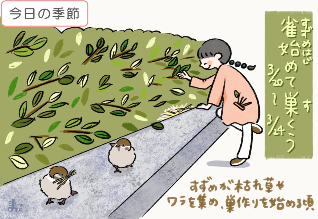 冬を過ごしたさなぎが、羽化して蝶になる頃。菜虫とは、モンシロチョウの幼虫のこと。サナギになって冬を越すとされる。よく、大根や白菜にくっついている。花と戯れるように飛ぶ姿が、春にぴったりな季節。