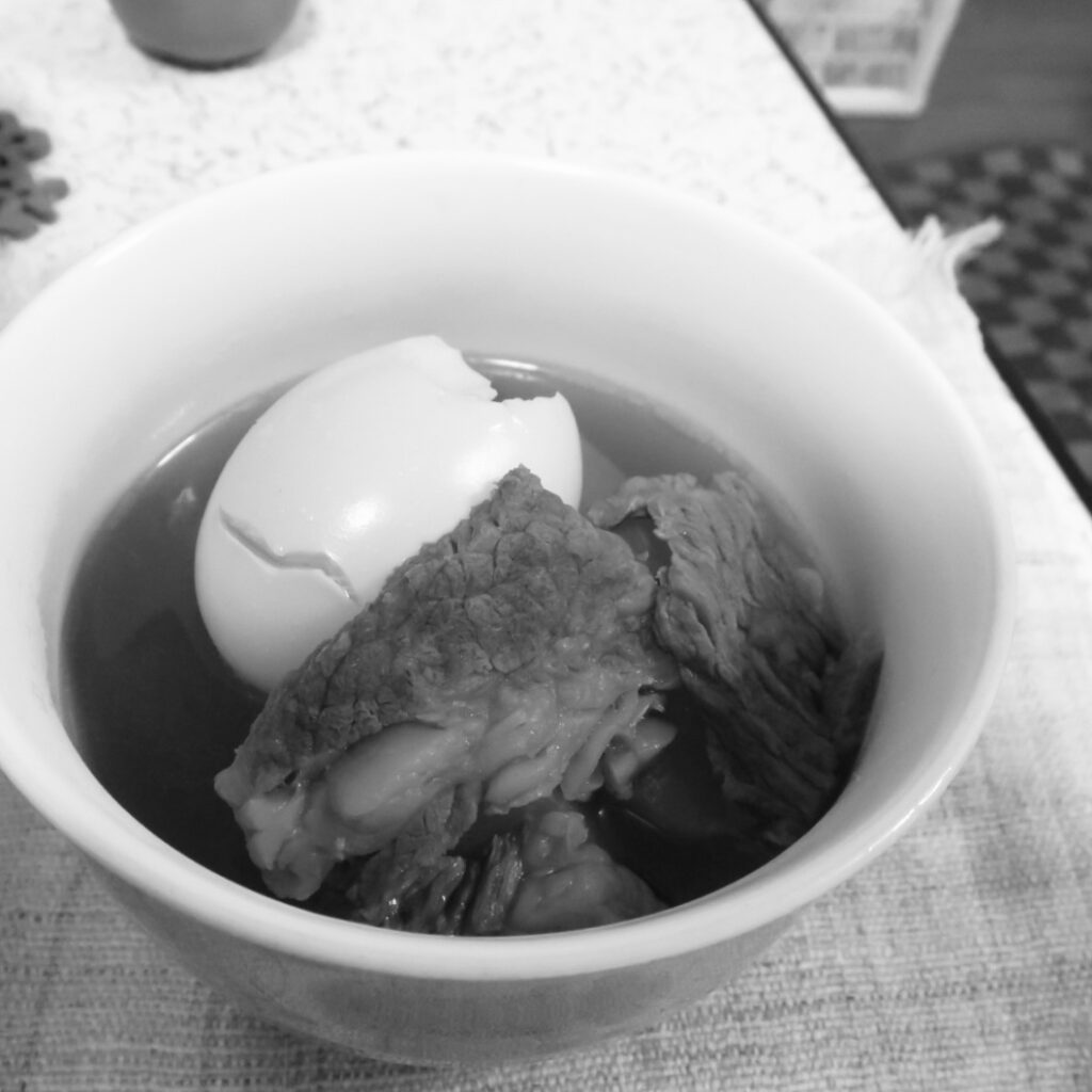 だって、作るときにゆで卵は剥きにくくてボロボロになったし、きれきな写真を撮るために盛ったわけじゃないのでそれを隠すこともしていないし、そもそもわが家の食事記録用であり、アップするつもりもなかったので、アングルも背景も気にしていない(その後で、おでんのことを日めくりに書こうと思った)。