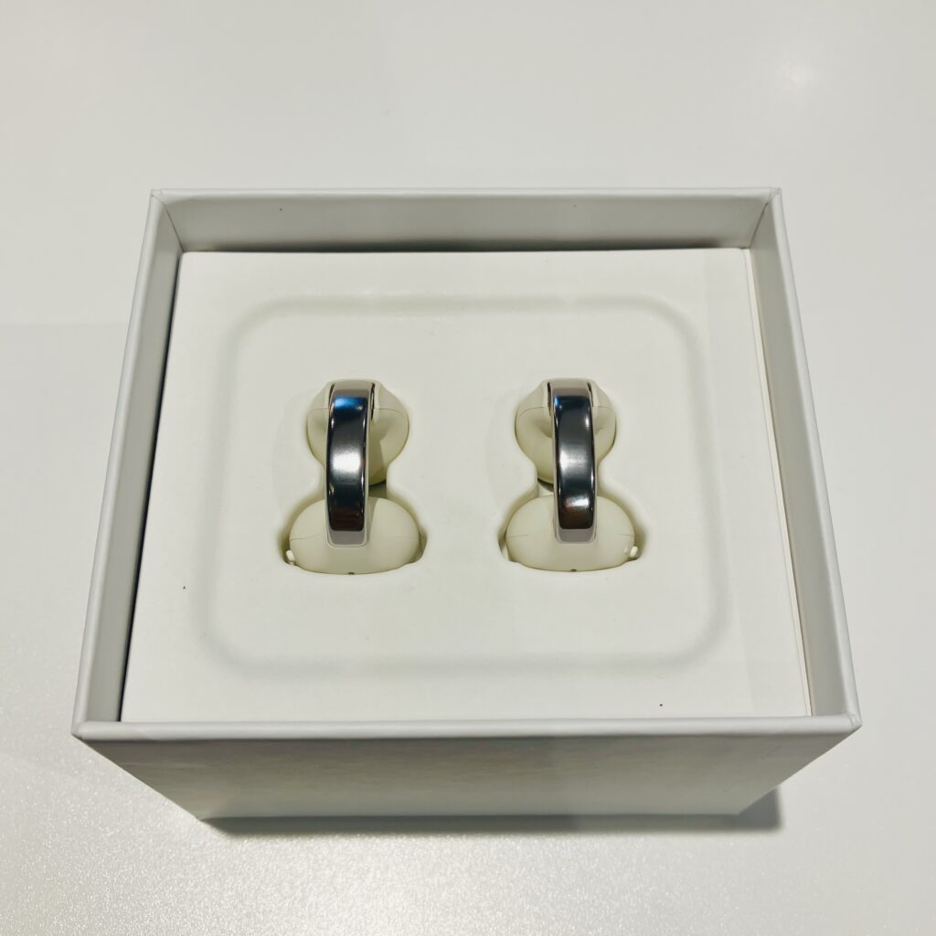 通勤の時も有線のイヤホンを使っていたけど、ある日ふと、「取り出してコードを伸ばして絡まないようにして…」と工程がいくつもあることの煩わしさが、音楽から遠ざかってしまっているんじゃないかと気づいた。その離れてしまった距離感を縮めたくて、コードレスでワイヤレスなイヤホンを買った。結婚指輪でももらったのかと思う梱包。かわいいね。