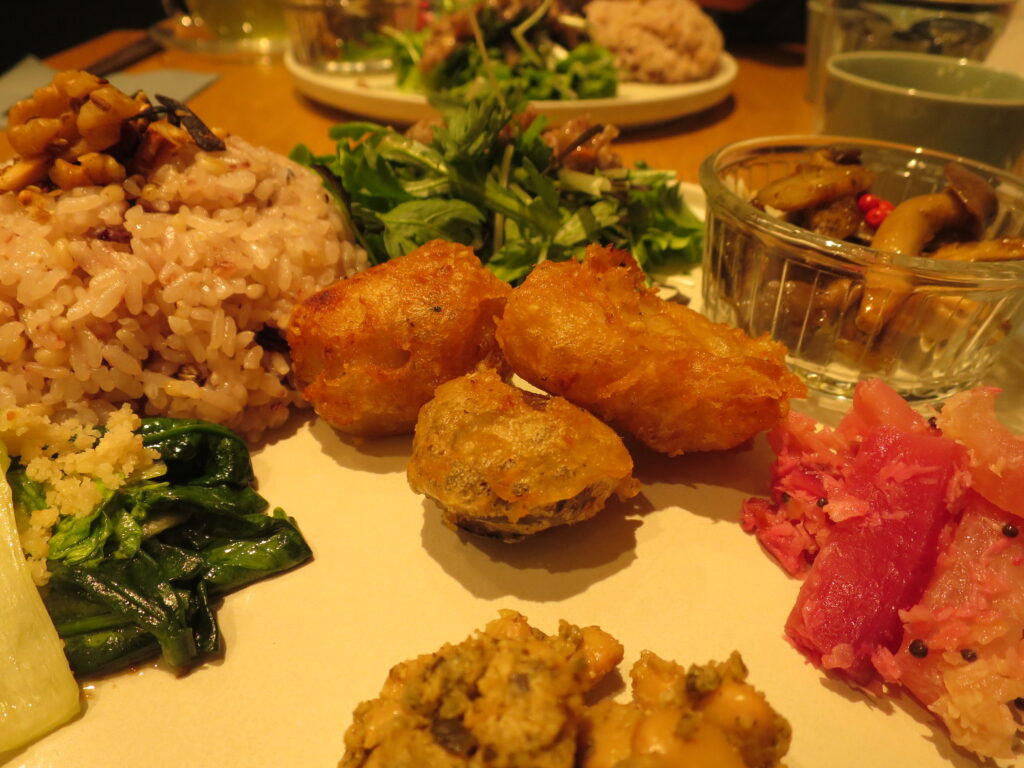 「里芋とマッシュルームの米粉フリット」
