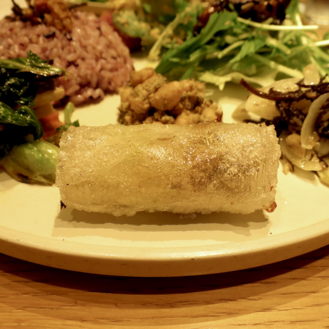 ・キャベツ、豆乳ホワイトソース。自家製の昆布佃煮 ライスペーパー包み揚げ