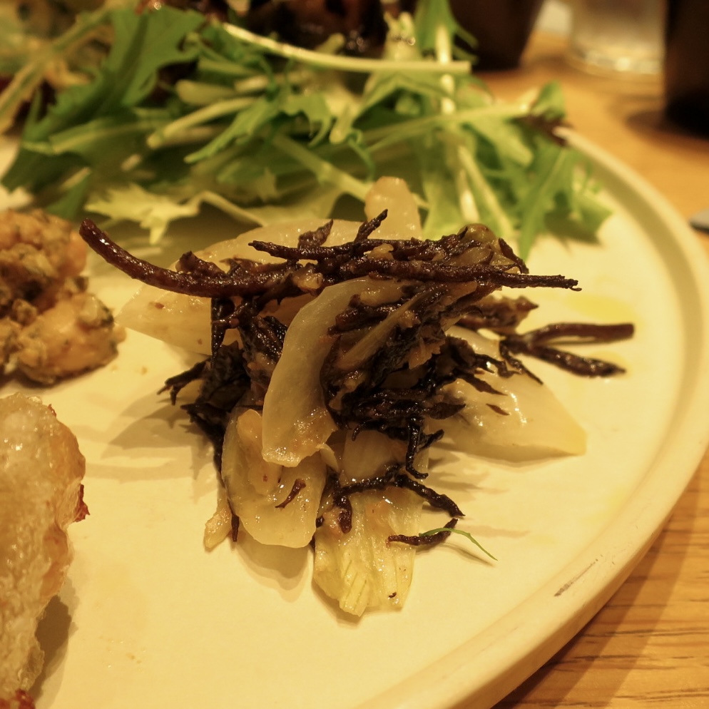 せっかく瑞々しい新玉ネギではあるが、これをあえて低温で焼く。すると水分が飛んで、ちょっと乾物だったヒジキに歩み寄ることになる。この歩み寄り加減がちょうどよかったので、レイヤーが揃っているなぁと感じたのだと思う。海藻の階層が合っていたのだ。