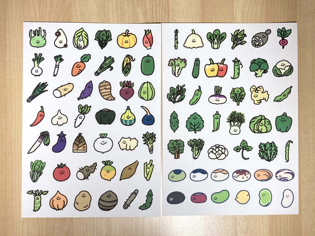 これまでの「おやさいシール(自分でカットするタイプ)」とは、おやさいのラインナップが少し異なります。
