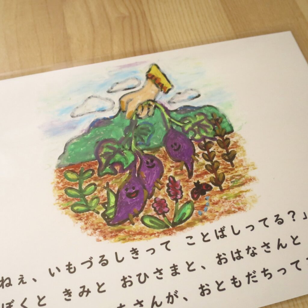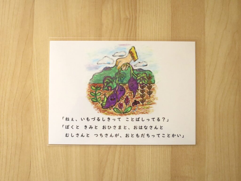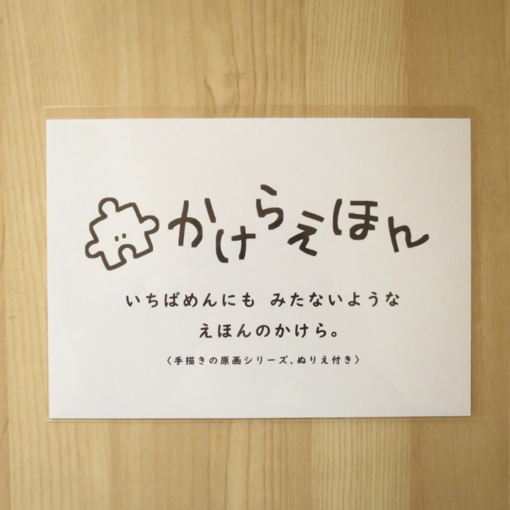 ・手描きのイラスト(かけらえほん)1枚と、そのイラストのぬりえバージョン1枚で1セットです。