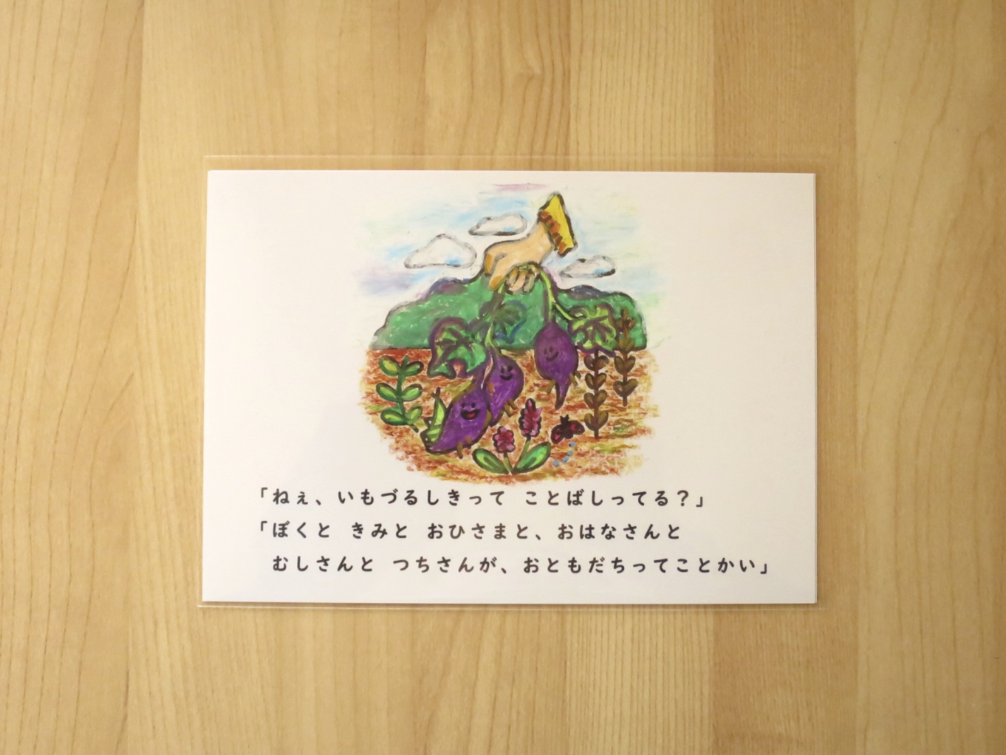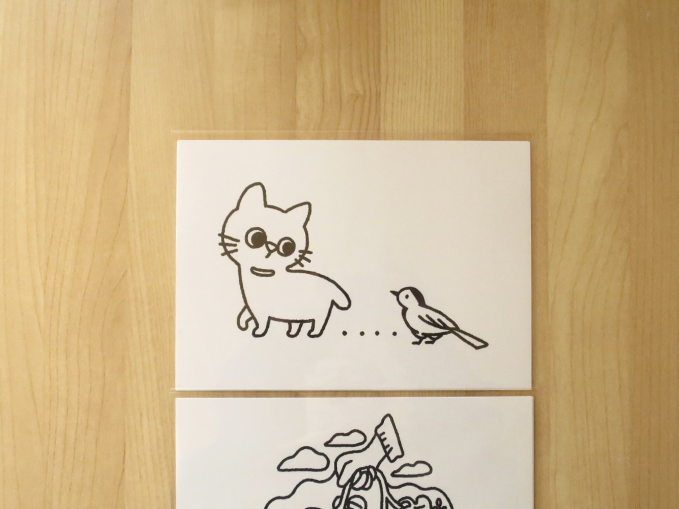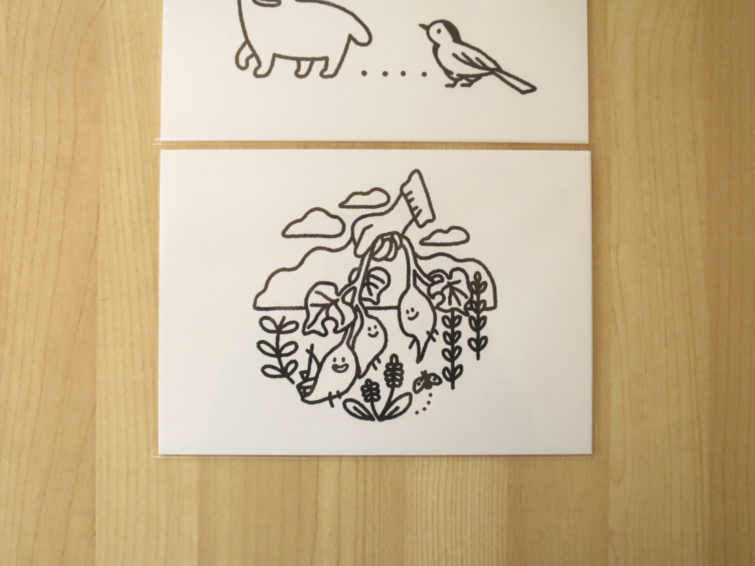 ・イラストには表面保護のスプレーをしておりますが、ビニールから出すときに擦れたり、直接触ったりすると、手が汚れたり絵が傷んだりする場合があるので、ご注意のうえお取り扱いください。