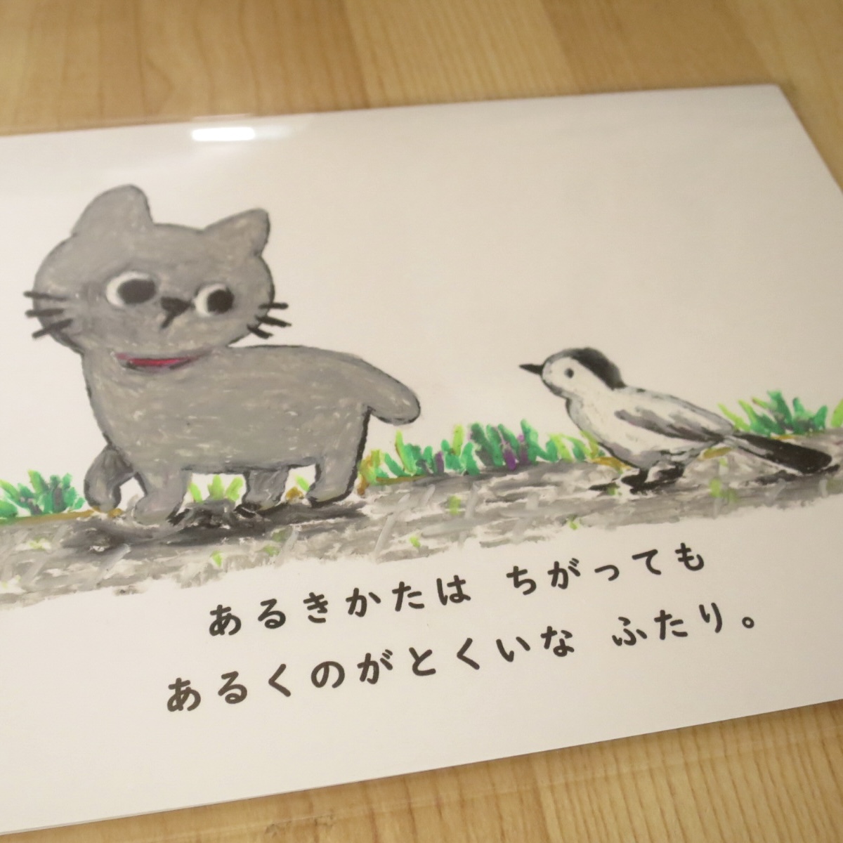 絵と言葉で、絵本のいちばめんのような一枚をつくりました。たったいちばめんですが、前後に広がる物語を楽しんでもらえると嬉しいです。