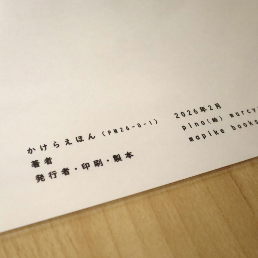 2021年4月から毎日続けている、小さなweb連載「日めくりカレンダー」。毎年、一年分の中から大賞と特別賞を選んで残していますが、本書は、その2024年度分を再構成したもの。縦書きになって紙に印刷され、web版とはだいぶ違う雰囲気に。表紙やおまけページは、本編で登場したpinoのイラストをたっぷりと。