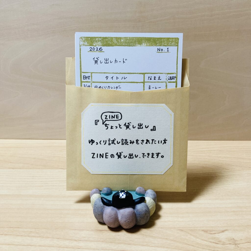 当日、まぴ家のブースには「試し読み用のZINE」を置いていますが、ひとりでゆっくり試し読みをしたいという方のために、[ちょっと貸し出し]をやってみようと思います。
